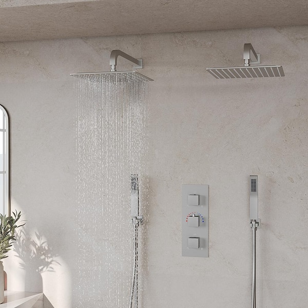ZenithRain Shower System 8-Spray 12 in. Dual Wall Mount Fixed and Handheld Shower Head 2.5 GPM in Brushed Nickel