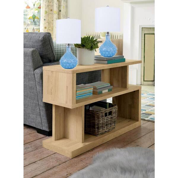 21 in. Milky Blue Glass Table Lamp with Dimpled Vase Design and Off-White Linen Shade (2-Pack)