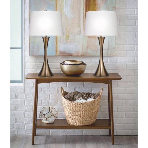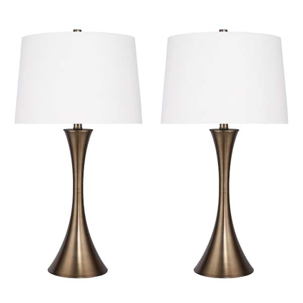 29 in. Matte Golden Bronze Table Lamps with Hourglass Body Design and Off-White Linen Shades (2-Pack)