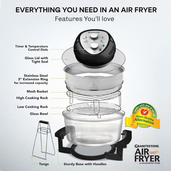 16 Qt. Black Oil-less Air Fryer with Built-In Timer