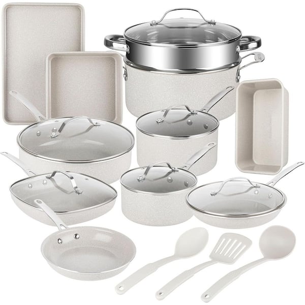 Ceraluxe 20-Piece Ceramic Nonstick Aluminum Cookware Set in Cream