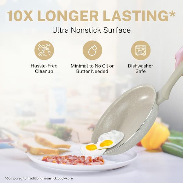 Desert Collection 20-Piece Aluminum Nonstick Cookware Set with Utensils in Speckled Beige