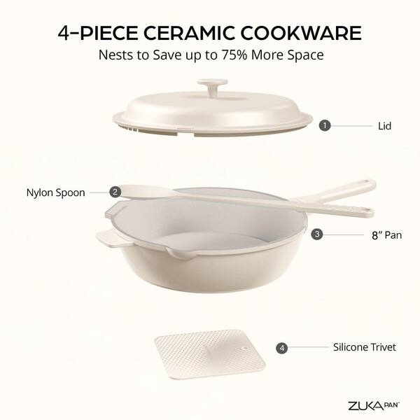 Zuka Everyday Pan 1.25 qt. Aluminum 10 in 1 Ceramic Nonstick Multi-Functional Saute Pan with Lid, Nylon Spoon