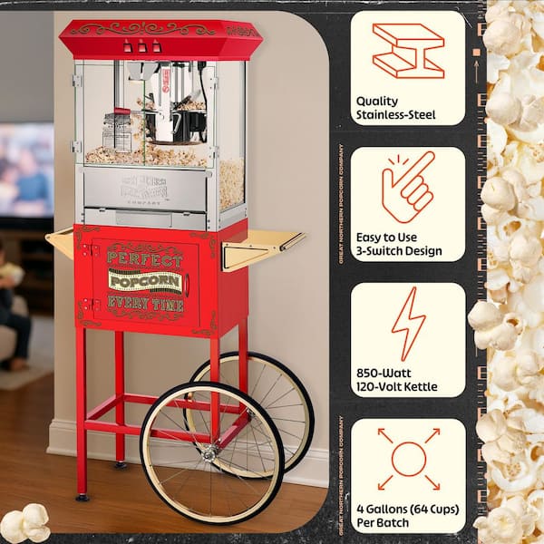 850-Watt 10 oz. Red Perfect Popcorn Machine with Cart