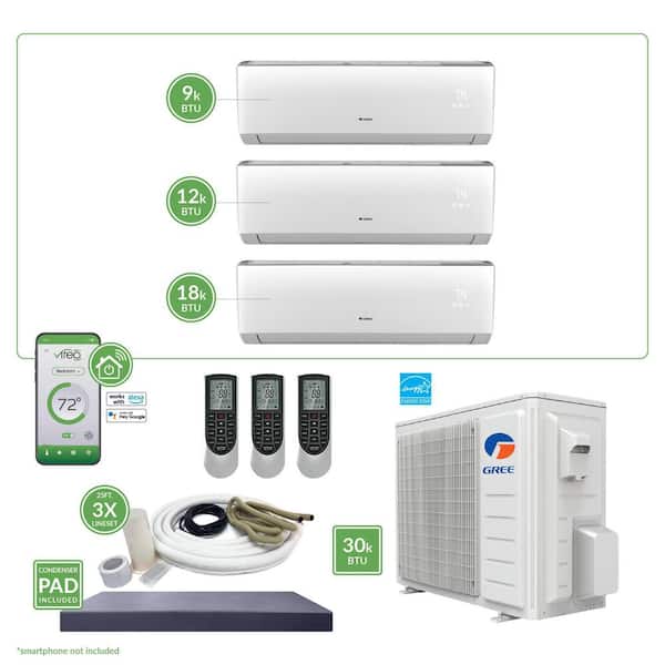 Gen3 Smart Home Triple-Zone 28,400 BTU 2.5 Ton Ductless Mini Split Air Conditioner & Heat Pump 25 ft. Install Kit 230V