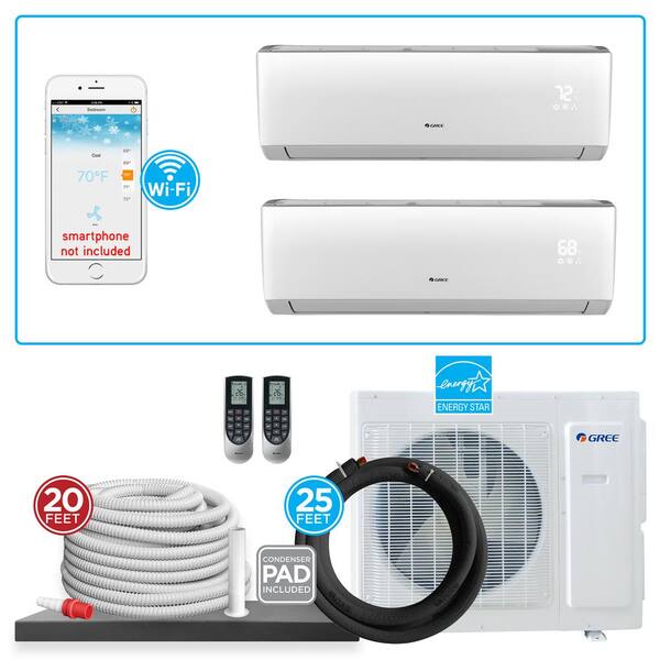 Ultra ENERGY STAR 2-Zone 25000 BTU 2 Ton Wi-Fi Ductless Mini Split Air Conditioner &Heat Pump w/ 25 ft. Install Kit 230V