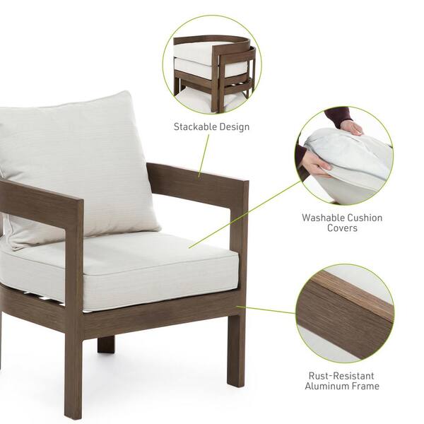 Lotus Natural 3-Piece Metal Patio Conversation Set With Beige Cushions