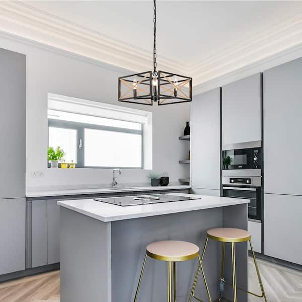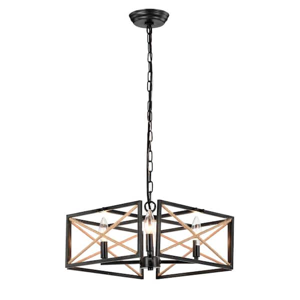 Kula 4-Light Sweep Black Geometric Lantern Style Chandelier for Dining/Living Room, Bedroom, Foyer, No Bulbs Included