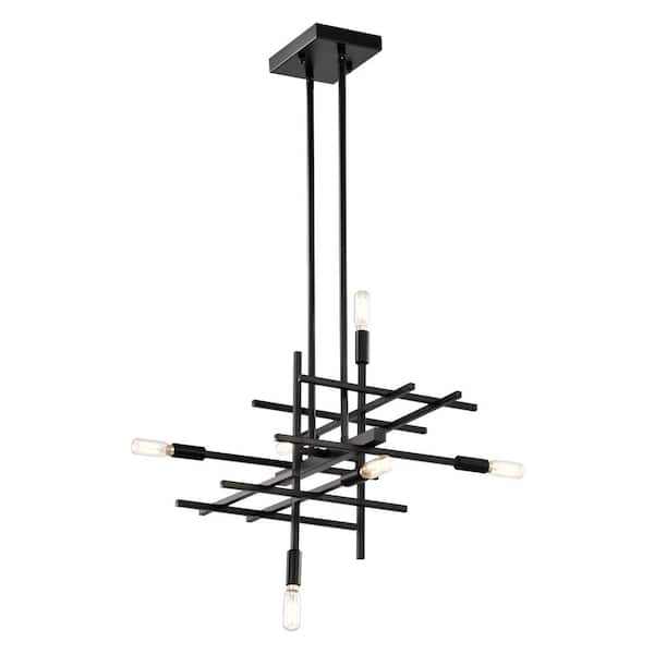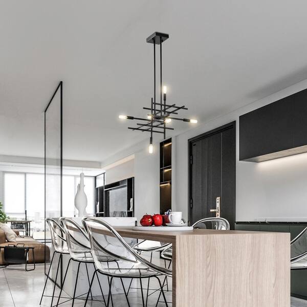 Lavanda 6-Light Black Geometric Chandelier for Dining/Living Room, Bedroom, Kitchen with No Bulbs Included