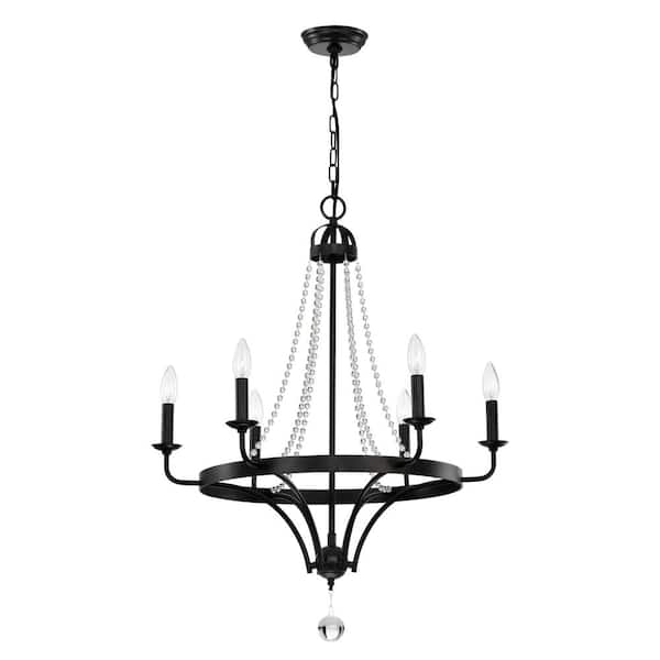 Lilje 6-Light Candle Style Sweep Black Wheel Chandelier for Dining/Living Room, Bedroom, Foyer, with No Bulbs Included