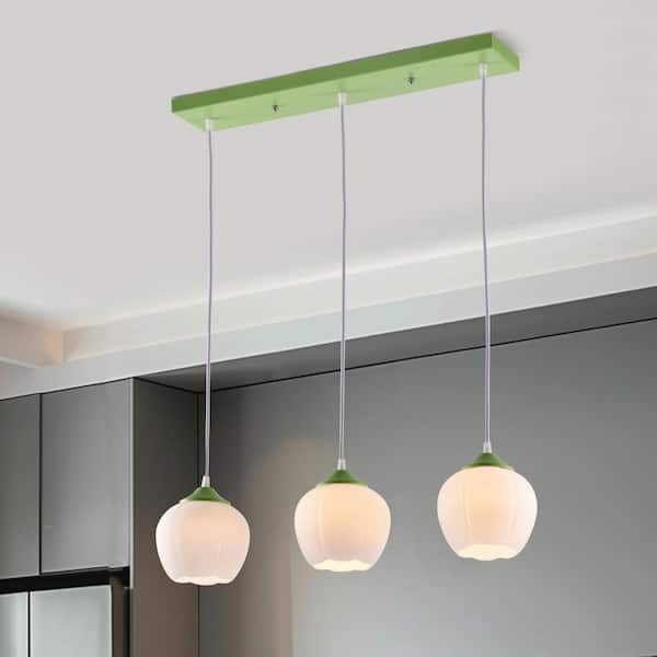 Santhia 60-Watt 3-Light Green Pendant Light with Glass Shades, No Bulbs Included