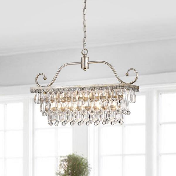 Taima 4-Light Antique Silver Chandelier for Kitchen Island, Dining/Living Room with No Bulbs Included