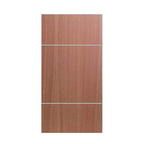 30 in. x 80 in. New Fashion 2 Horizontal Metal Strips Semi-Solid Core Wood Interior Door Slab