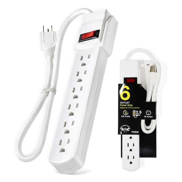 6-Outlet Power Strip with 2.5 ft. Power Cord, White