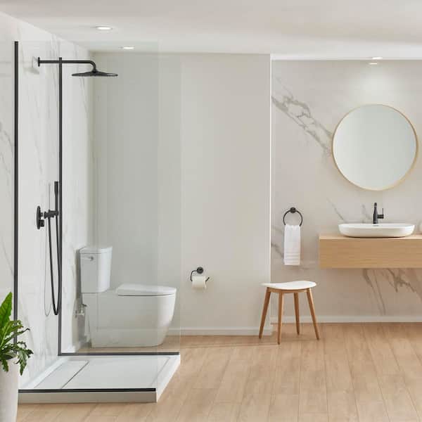 Essentials Single Post Wall Mounted Toilet Paper Holder with Cover in Matte Black
