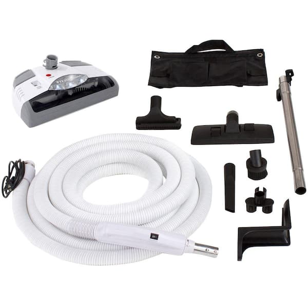 30 ft. Central Vacuum Hose White Power Nozzle Head with Complete Kit fits All Brands