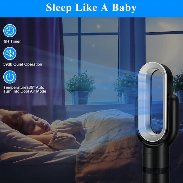 26-in. Space Heater Bladeless Tower Fan, Heater and Cooling Combo, with Remote Control, for Home Air Conditioner, Black