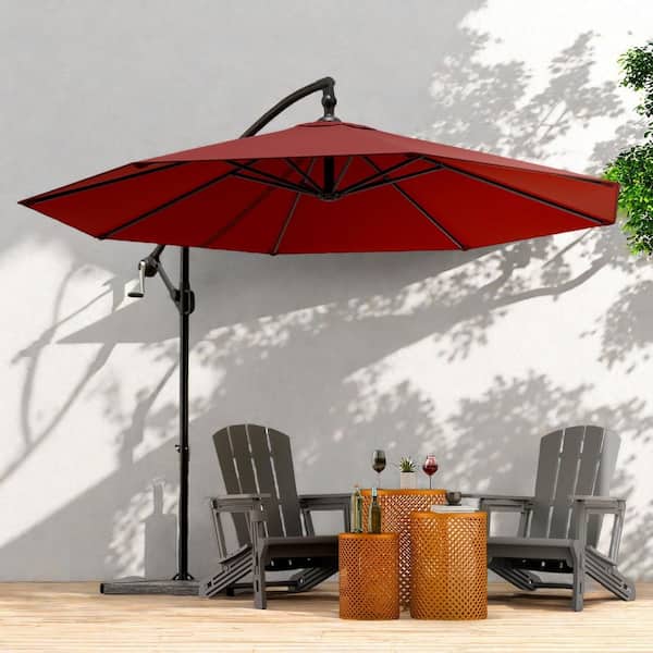 9.5 ft. Tiltable Rotating Banana Umbrella 360° Rotation Cantilever Patio Umbrella with Footrest, in Red
