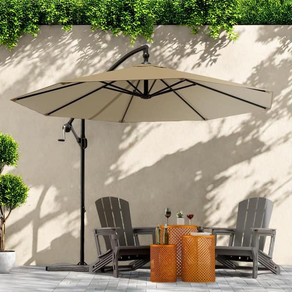 9.5 ft. Tiltable Rotating Banana Umbrella 360° Rotation Cantilever Patio Umbrella with Footrest, in khaki