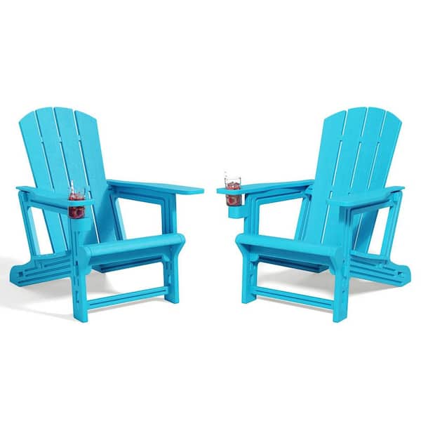 Outdoor Plastic Adirondack Chair with Cup Holder in Azure Blue
