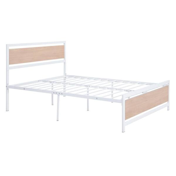 Full Size White Metal Bed Frame With Large Storage Space Under The Bed