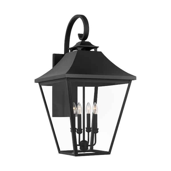 Galena 4-Light Textured Black Outdoor Extra Large Hardwired Wall Lantern Sconce with Clear Seeded Glass
