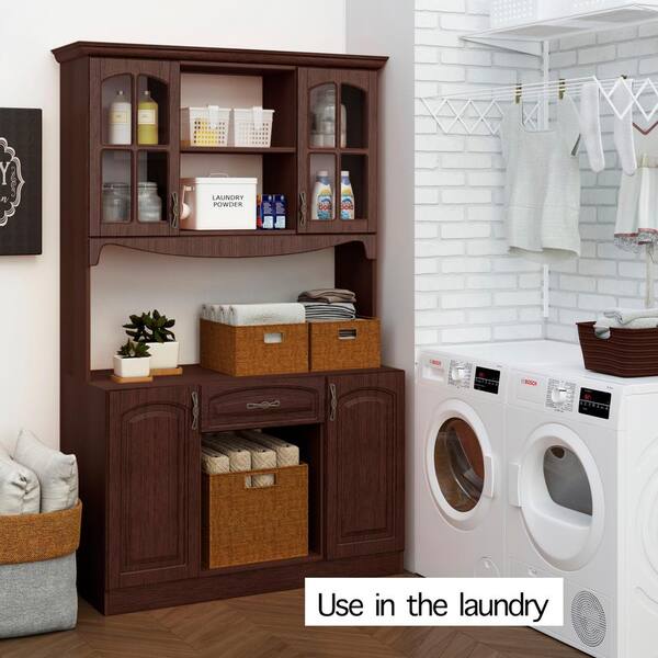 Galiano 73 in. Espresso Pantry Buffet with Hutch with Wine Rack and Drawer