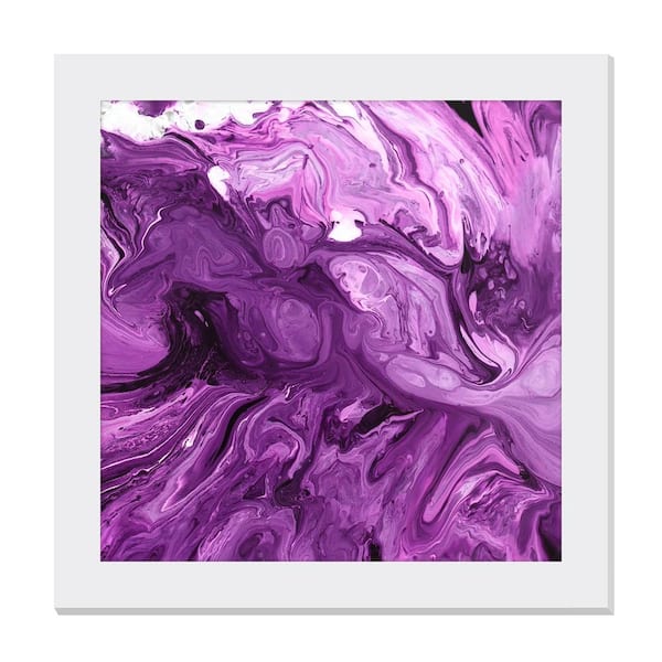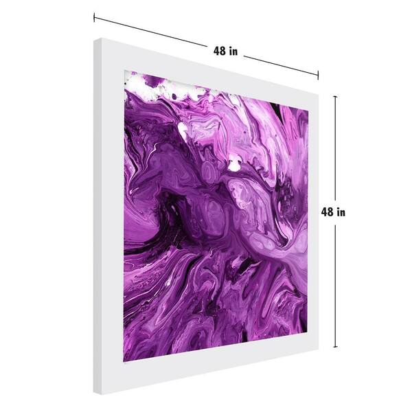 Gallery-Grade Deep Purple Explosion White Framed Acrylic Abstract Statement Wall Art 48 in. x 48 in.