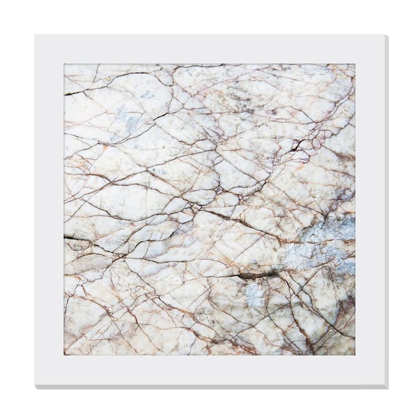 Gallery-Grade Earthy Veining Marble White Framed Acrylic Abstract Statement Wall Art 48 in. x 48 in.
