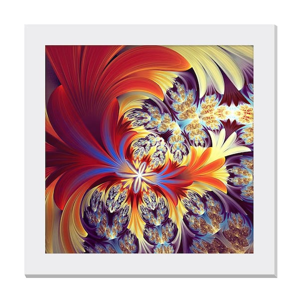 Gallery-Grade Flamboyant Flower Explosion White Framed Acrylic Abstract Statement Wall Art 48 in. x 48 in.