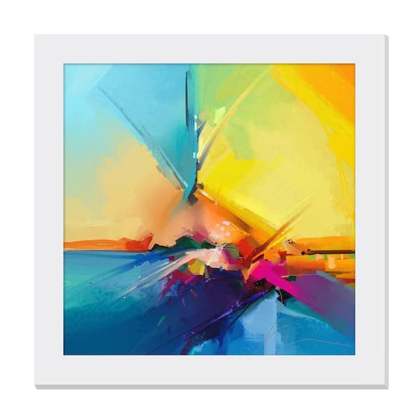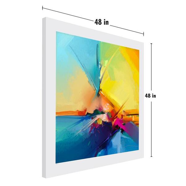 Gallery-Grade Vibrant Rainbow White Framed Acrylic Abstract Statement Wall Art 48 in. x 48 in.