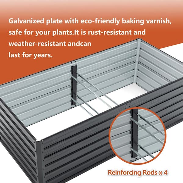 Galvanized Rustproof Steel Rectangular Outdoor Raised Garden Bed, Planter Boxes with Reinforcing Rods