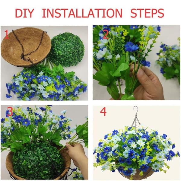 Garden Decoration Series:21.6 in. H x 15.7 in. W Blue Artificial Daisy Flowers with Basket