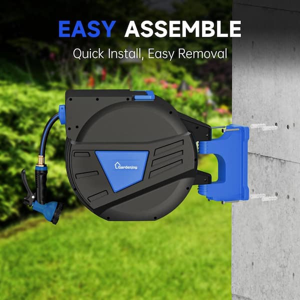 Retractable Hose Reel 1/2 in.-130 ft. Garden Water Hose Reel Wall Mounted Hose Storage 180° Swivel Bracket Blue