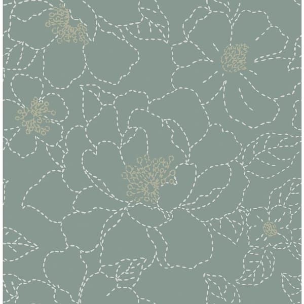 Gardena Embroidered Floral Green Nonpasted Non Woven Wallpaper Sample