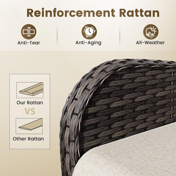 3-Piece Wicker Patio Outdoor Lounge Chair Set with Beige Cushions and Side Table