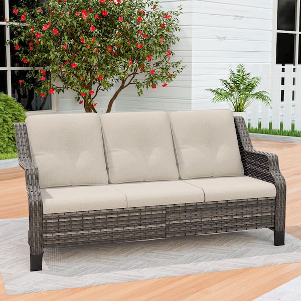 3-Seat Wicker Outdoor Patio Sofa Sectional Couch with BeigeCushions