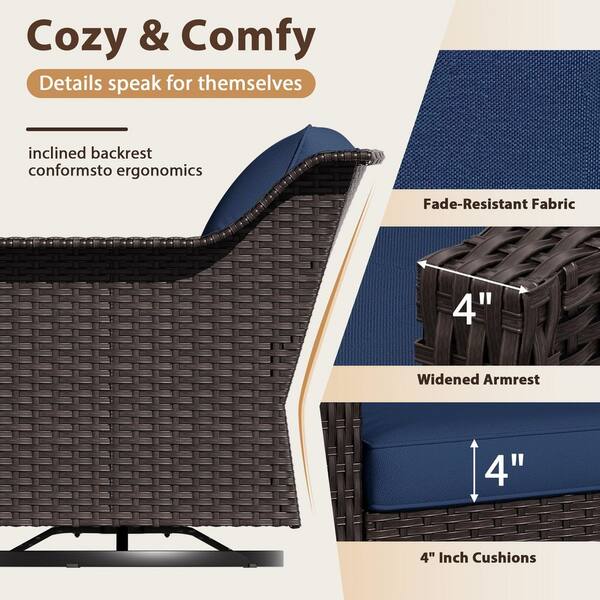 5-Piece Wicker Outdoor Patio Conversation Sectional Set With Blue Cushions