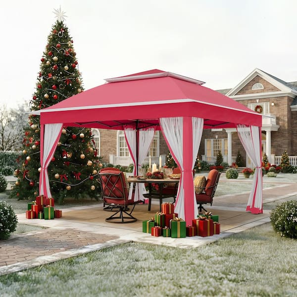 Pink Steel Portable Pop-Up Gazebo with Mosquito Netting 11 ft. x 11 ft. . .