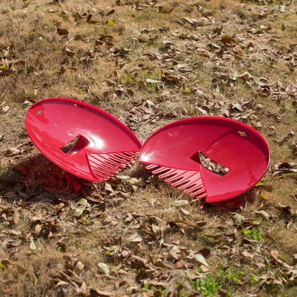 12 in. Plastic Handle Decorative Pair of Leaf Scoops, Hand Rakes for Lawn and Garden Cleanup, Red