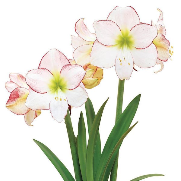 9 in. Pot Picotee White and Pink Flowering Amaryllis (Hippeastrum) 3 Bulb Holiday Gift Kit, Planted in a Foil Wrapped