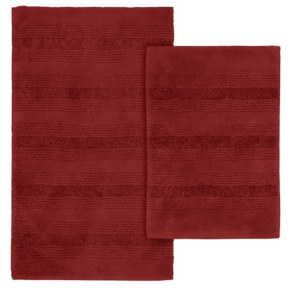 Essence Chili Red 21 in. x 34 in. Striped Nylon 2-Piece Bath Mat Set
