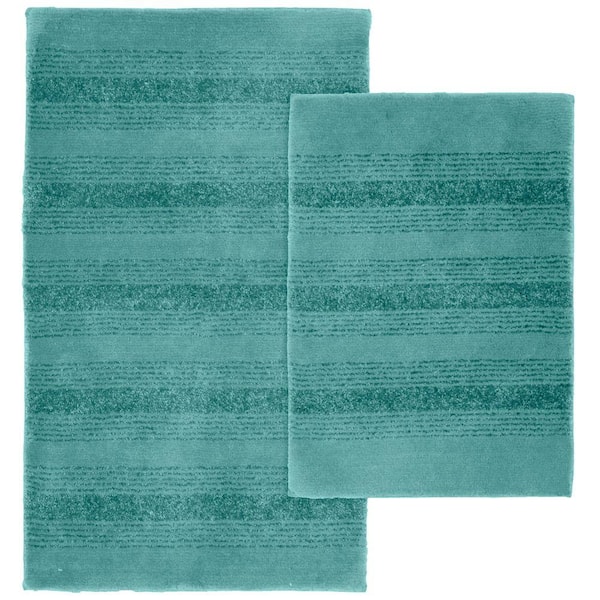 Essence Sea Foam 21 in. x 34 in. Nylon Washable Bathroom 2-Piece Rug Set