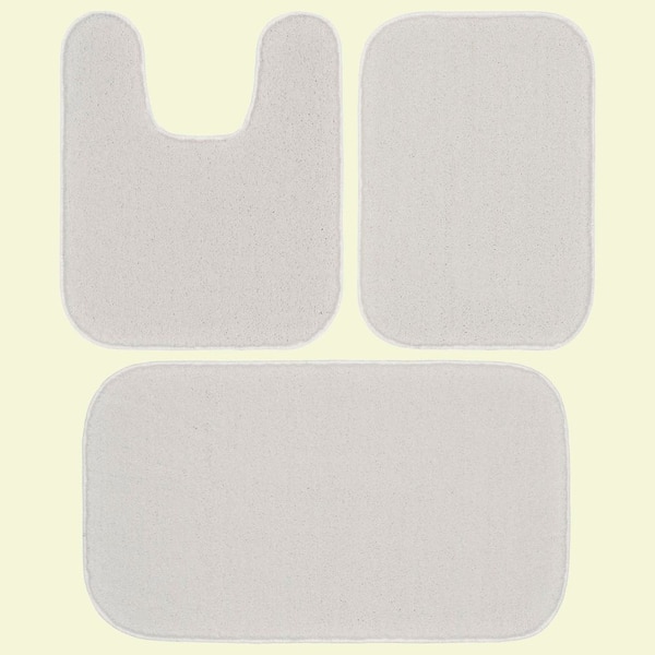 Sedona White Solid Color Plush Polypropylene Rectangle 3-Piece Bathroom Rug Set (No Lid)