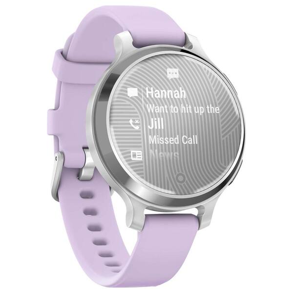 Lily 2-Active Health and Fitness GPS Smartwatch with Anodized Aluminum Bezel 1.5 x .4 in Silver with Purple Jasmine