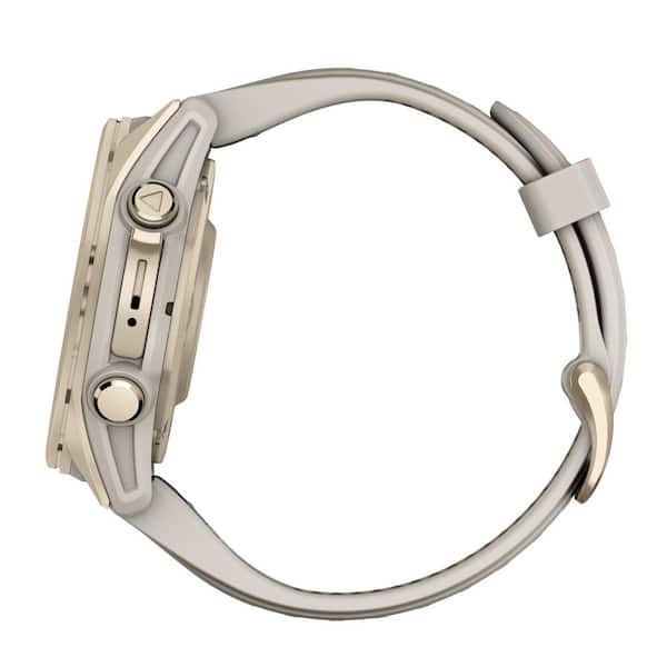 fenix 8 AMOLED Multisport 43-mm GPS Watch with Silicone Band 1.69 x .54 in Sapphire Lens, Soft Gold and Fog Gray