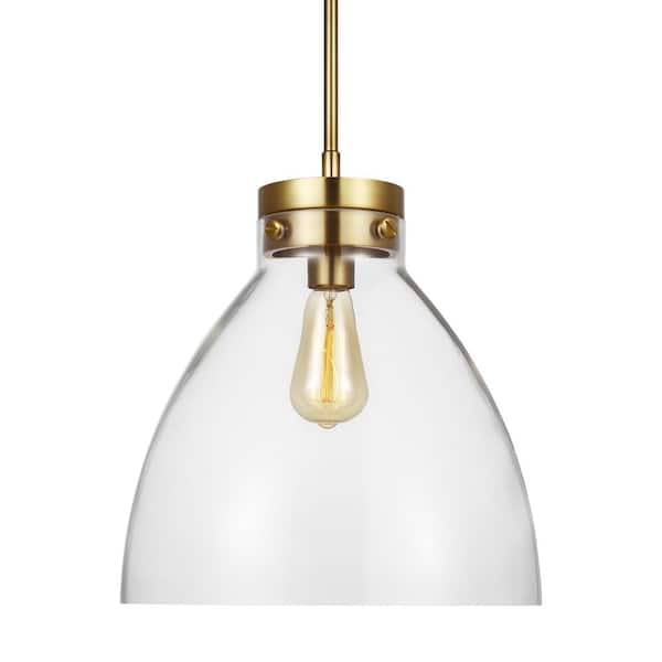 Garrett 1-Light Burnished Brass Pendant with Clear Glass Shade