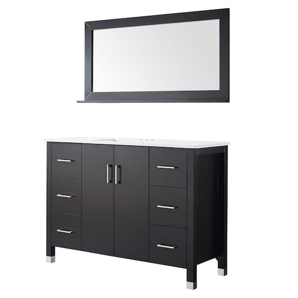 Armani III PVC 48 in. W x 18.5 in. D x 34. in. H 3-Piece Bath Vanity Set in Wengue Color with White Basin and Mirror