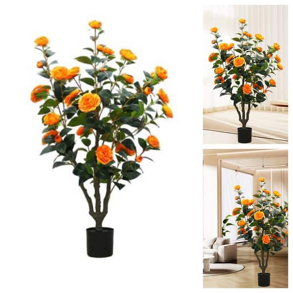 1 Pack 3. 3FT Artificial Camellia Tree in Pot, Orange