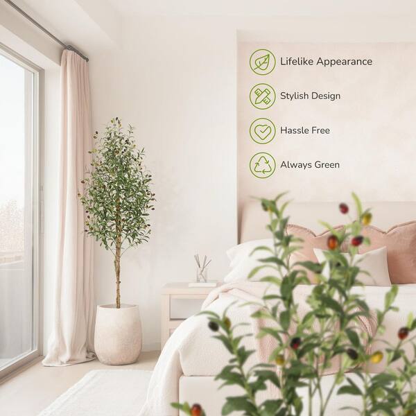 1-Piece 6 ft. Artificial Olive Tree In White Planter, Olive Trees with Natural Wood Trunk and Green Fake Moss